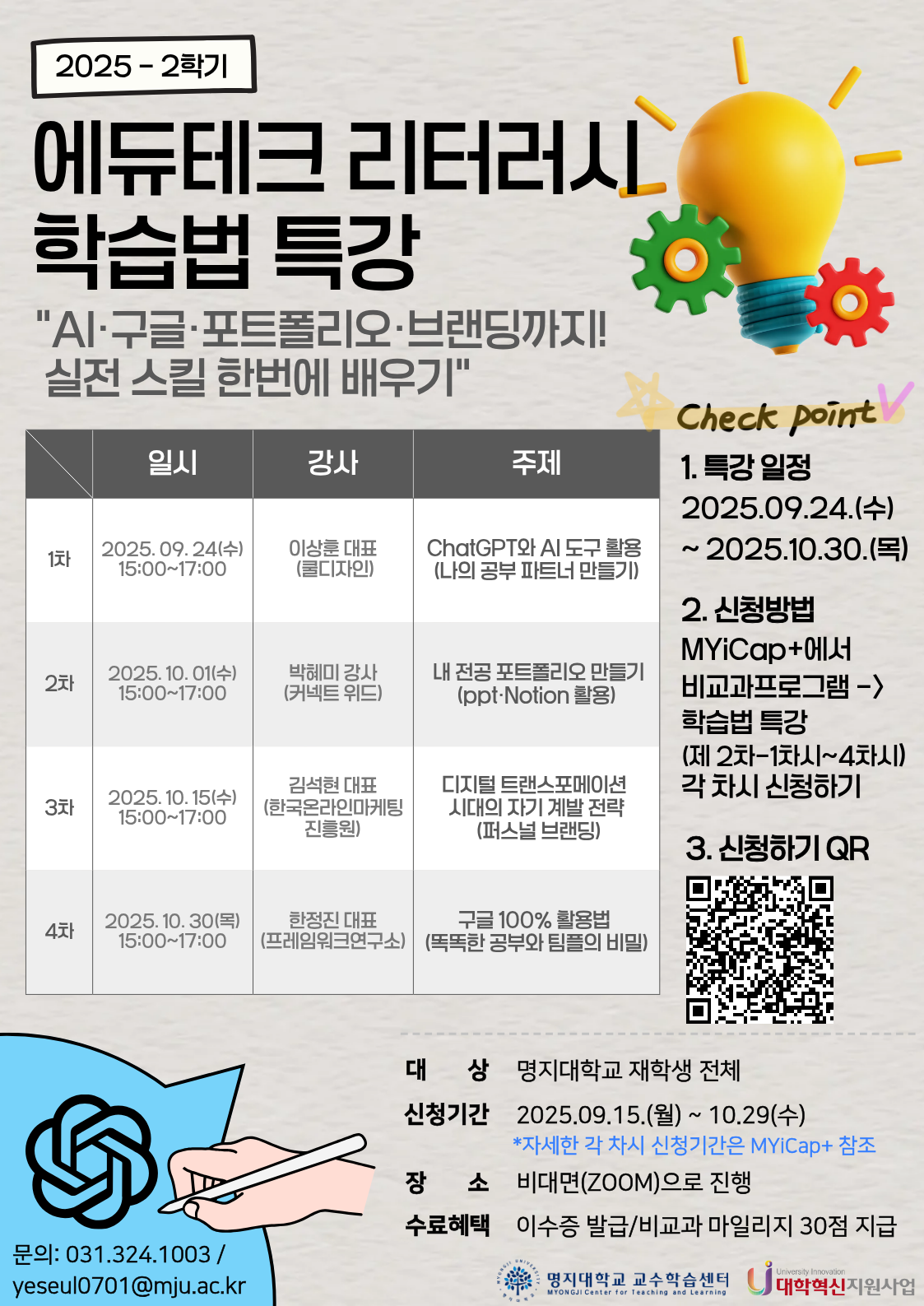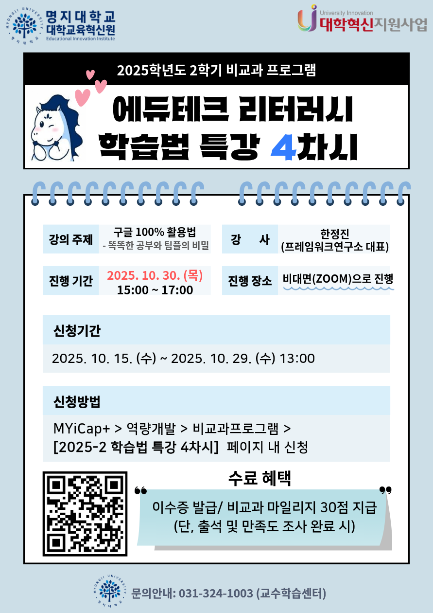 [교수학습센터] 2025학년도 2학기 에듀테크 리터러시 [학습법 특강(4차)] 비교과 프로그램 신청 안내